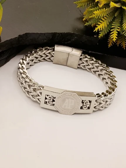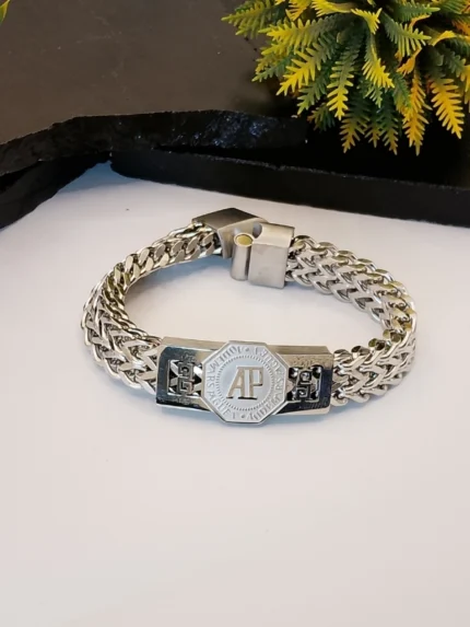 AP Logo Octagon Wheat Chain Silver Bracelet – Premium Men’s Jewelry