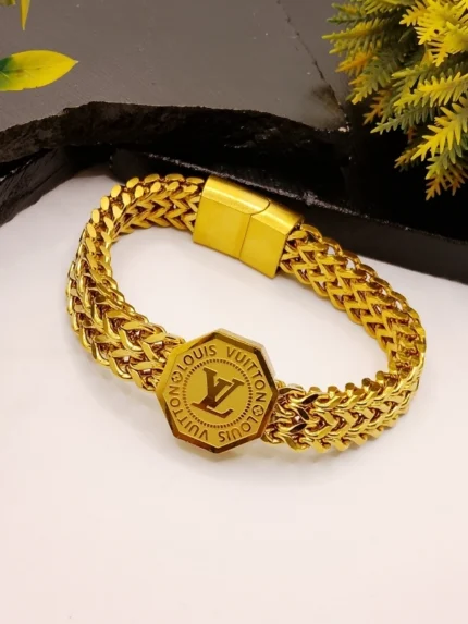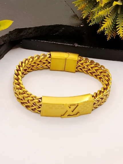 Luxury LV Signature Gold Bracelet – Square Wheat Chain for Men