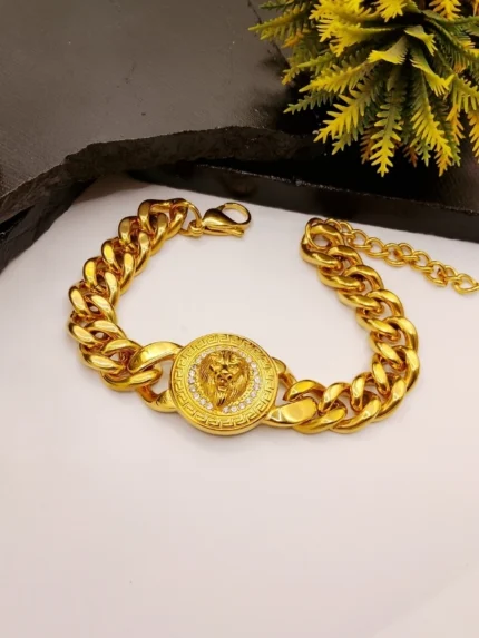 Bold Lion Head Gold Bracelet for Men – Heavy Chain with Crystal Eyes
