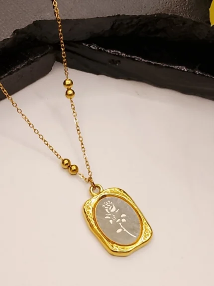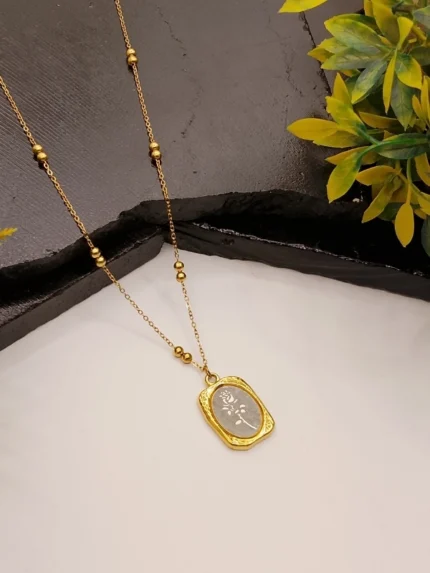 Gold Plated Rose Flower Pendant Necklace for Women – Beaded Chain