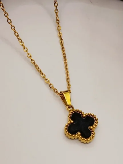 Gold Plated Black Four Leaf Clover Pendant Necklace for Women