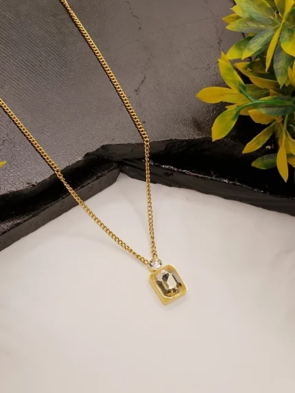 Gold Plated Clear Crystal Square Pendant Necklace for Women