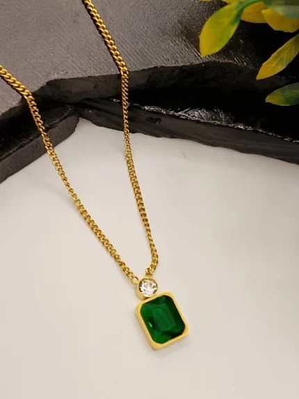 Gold Plated Emerald Green Square Pendant Necklace for Women