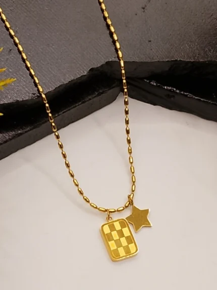 Stylish Square Mosaic Pendant with Star Charm on Bead Chain