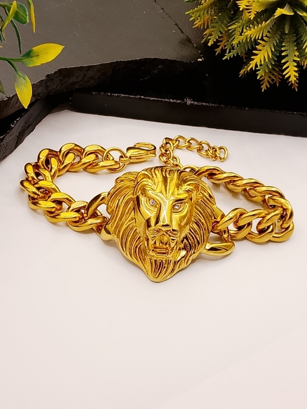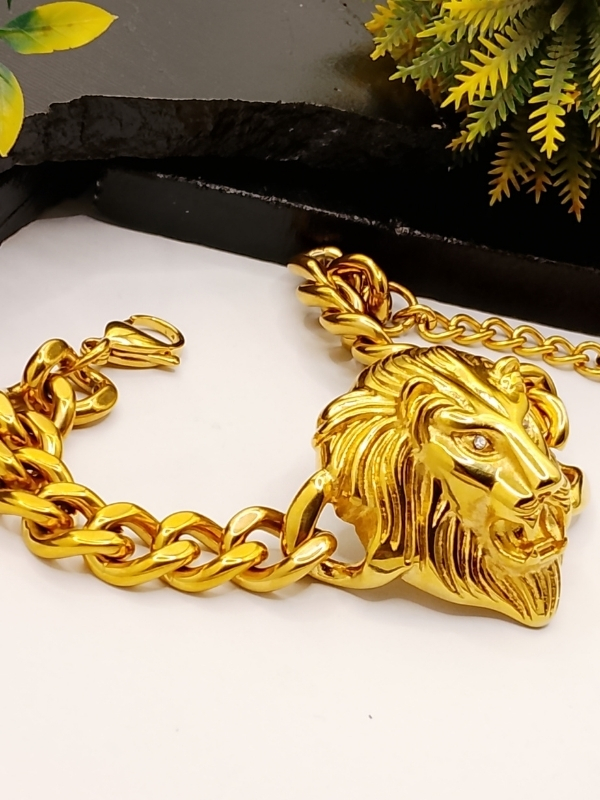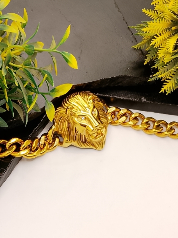 This striking men’s bracelet features a large, detailed lion head as the focal point, complete with realistic mane and sparkling crystal eyes. Paired with a robust chunky chain, it delivers a bold, masculine, and luxurious look that commands attention.