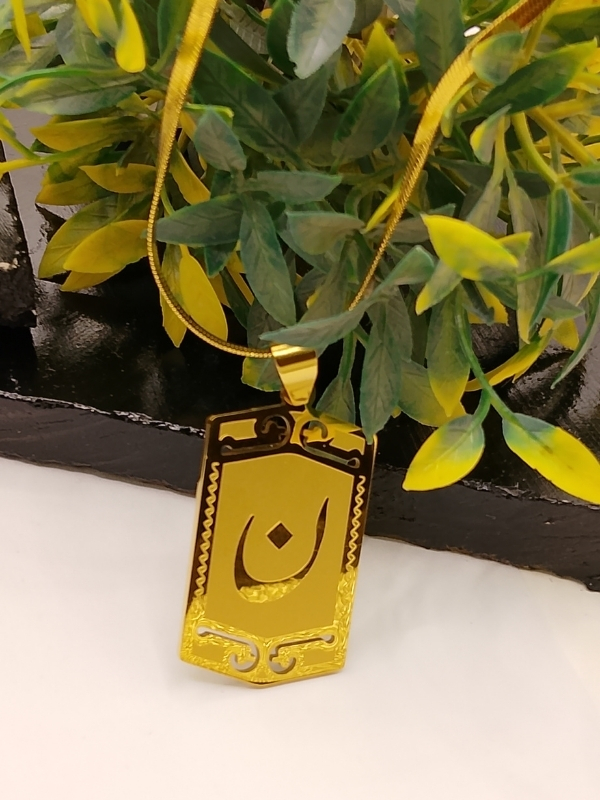 - Design: Rectangular Pendant with Arabic Letter “ن” (Noon)