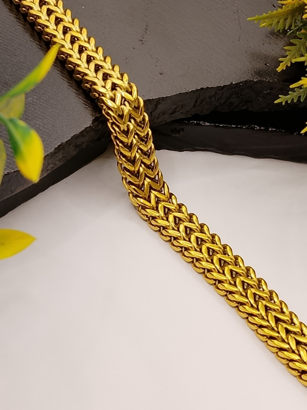 This premium men’s gold bracelet combines intricate design with luxurious appeal. The heavy Byzantine chevron link chain creates a bold, textured look that elevates any outfit with confidence and style.
