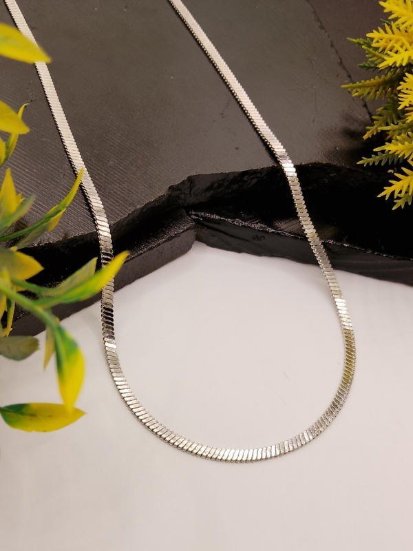 Elegant flat snake-style silver chain with super tight links that create a smooth, seamless metallic look and dazzling mirror shine. Lightweight, flexible, and perfect for a clean, modern style statement.