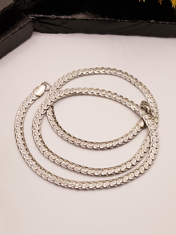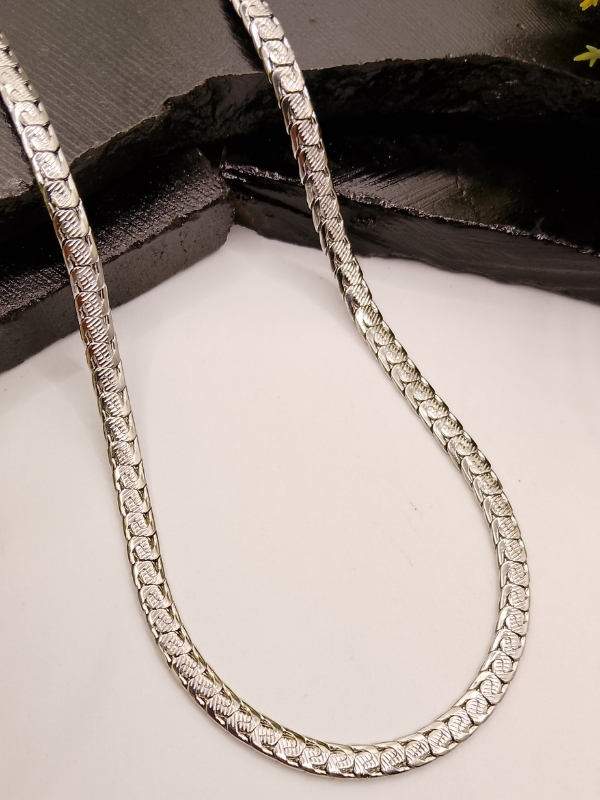 Delicate yet stylish silver chain featuring small textured curb links with brilliant mirror shine. Lightweight, flexible, and perfect for everyday elegant wear.