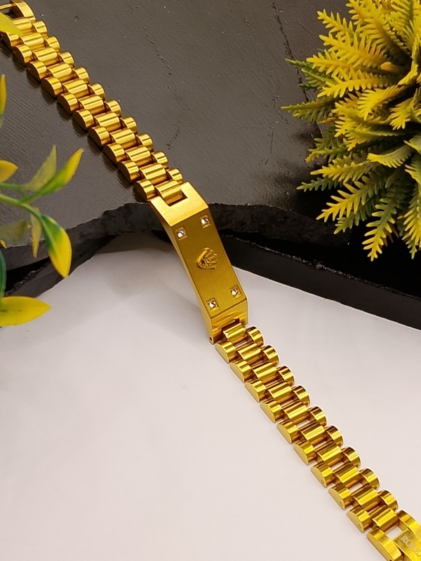 The Rolex Square Crown Gold Plated Bracelet is a masterpiece of geometric design. Moving away from rounded shapes, the sharp 4-cornered square centerpiece provides a bold and masculine frame for the legendary Rolex crown. It’s the perfect blend of modern fashion and timeless luxury.